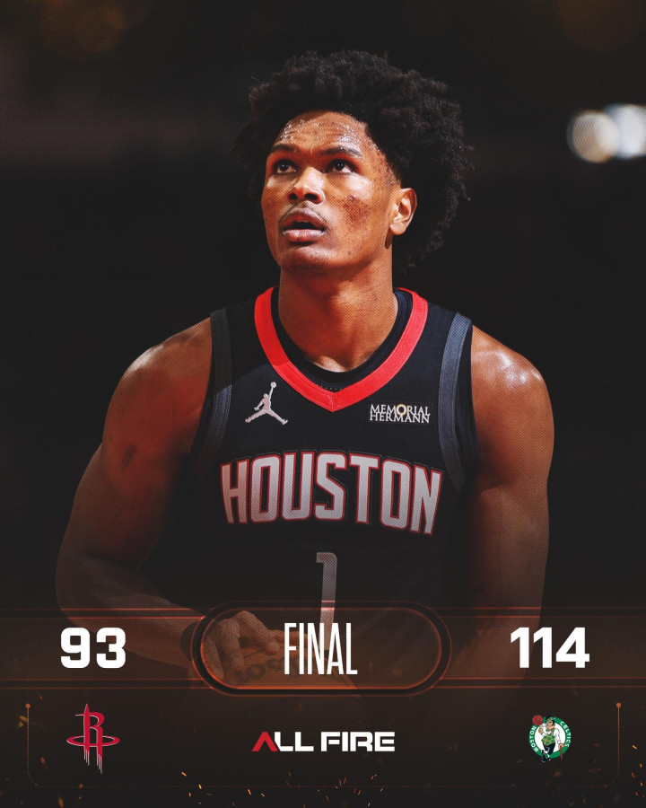 北京时间2024年2月5日,NBA常规赛,休斯顿火箭队主场对阵俄克拉荷马城雷霆队。经过四节激战,火箭队以105-109不敌雷霆队。火箭队后卫杰伦·格林表现出色,全场贡献28分5篮板3助攻,但未能帮助球队取胜;中锋阿尔佩伦·申京拿下19分12篮板4助攻的两双数据。雷霆队方面,谢伊·吉尔杰斯-亚历山大独得37分,率领球队获胜。火箭官方Instagram发布的图片(https://bpl-crawler.oss-cn-hangzhou.aliyuncs.com/crawler_image/202602/2524eeb509027c92b213c7b37bb4839e.jpg?x-oss-date=20260205T043236Z&x-oss-expires=7200&x-oss-signature-version=OSS4-HMAC-SHA256&x-oss-credential=LTAI5tFa7Yedfornwa8MV872/20260205/cn-hangzhou/oss/aliyun_v4_request&x-oss-signature=51082b2adf68a5ecafc2857c71f24b4aa029f9e7e5955fa51562fcfbb8b06462)显示,杰伦·格林在第三节突破上篮的瞬间,展现了其explosive的进攻能力。此役后,火箭队战绩更新为20胜27负,继续位列西部第13位。